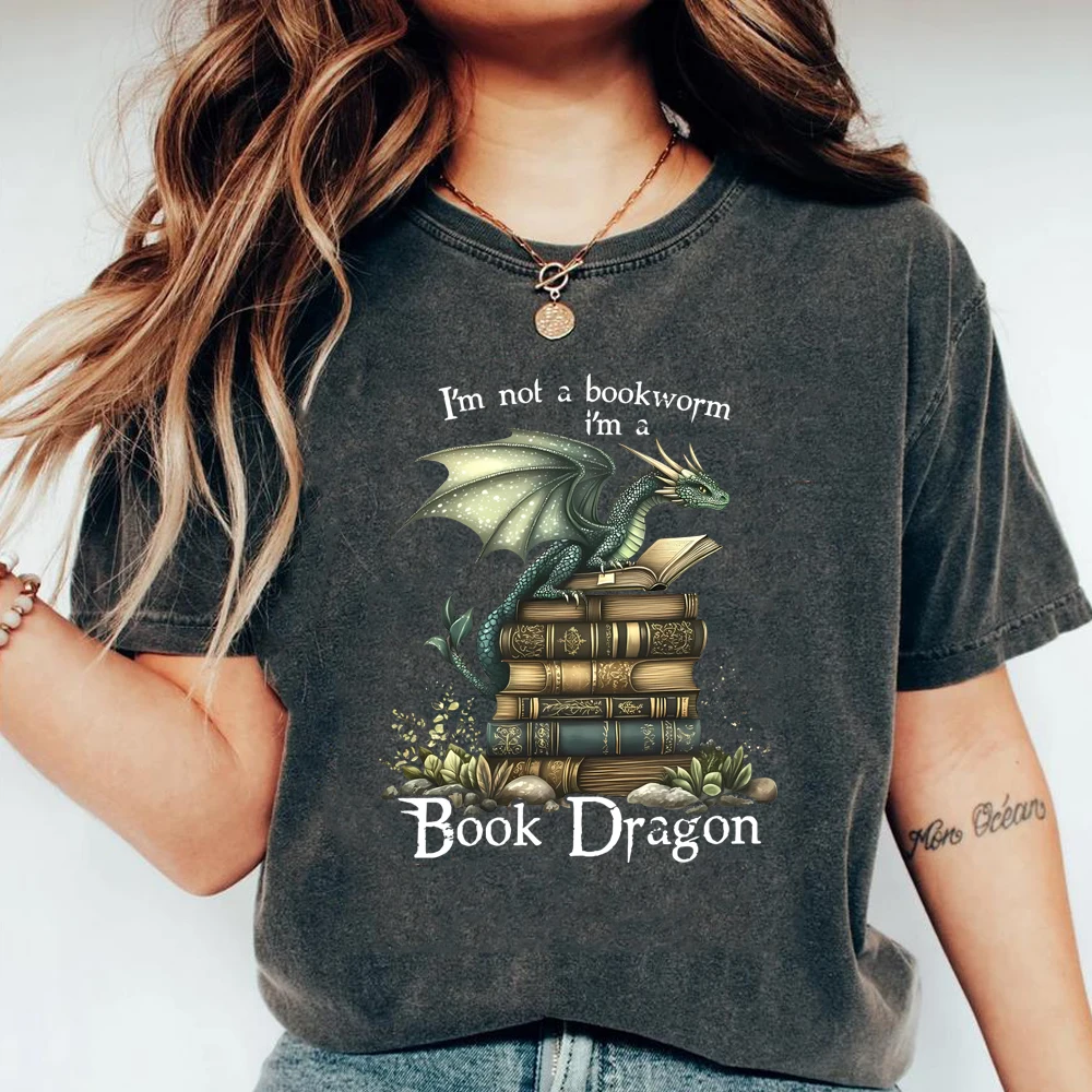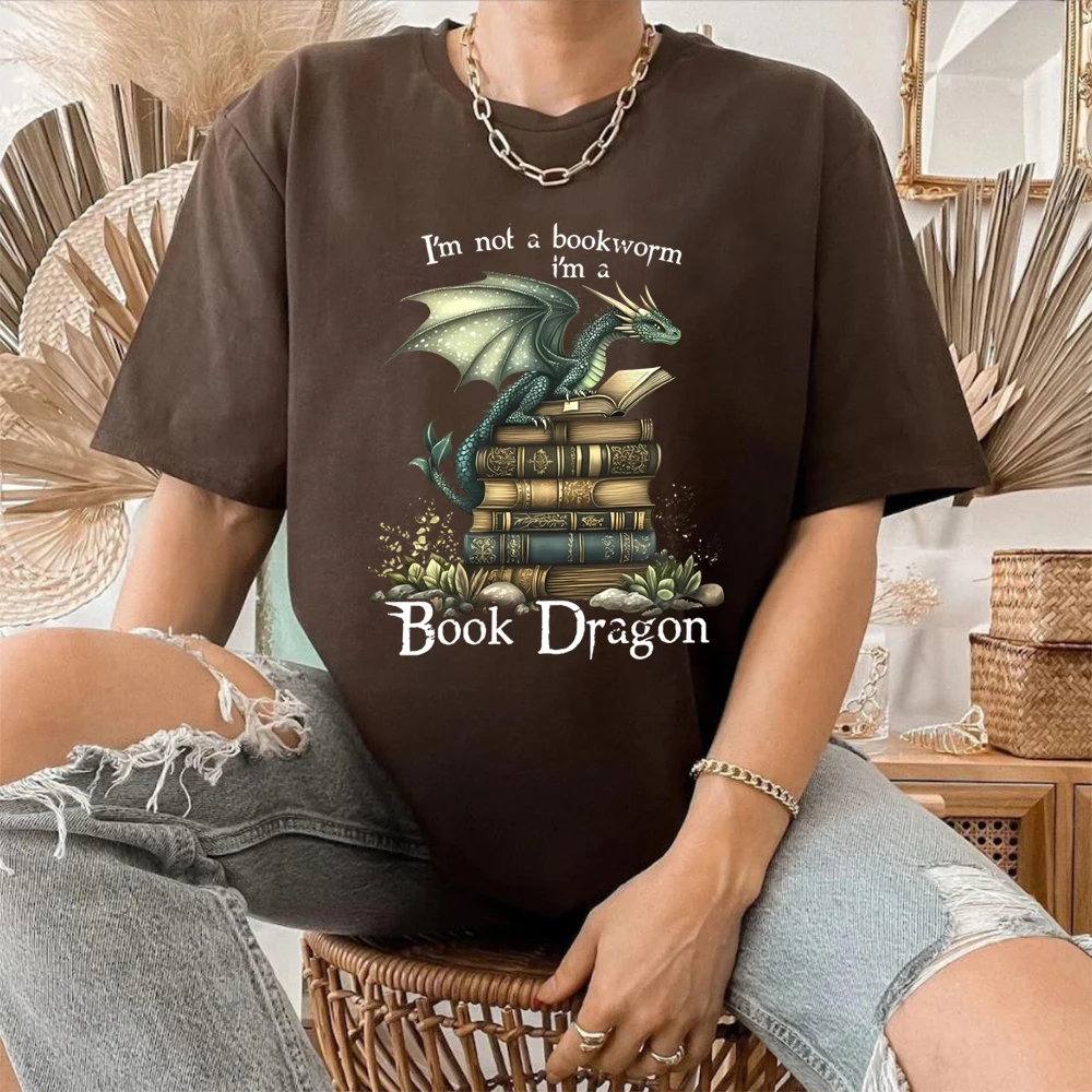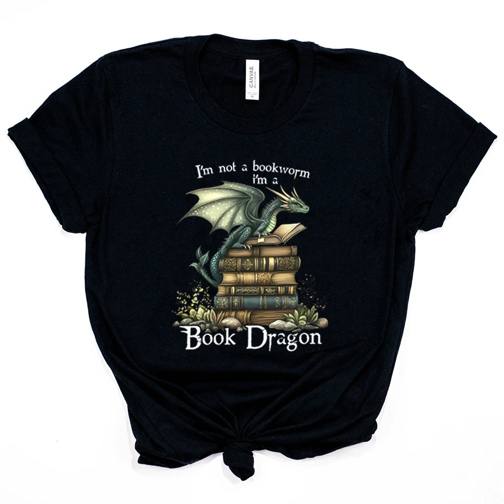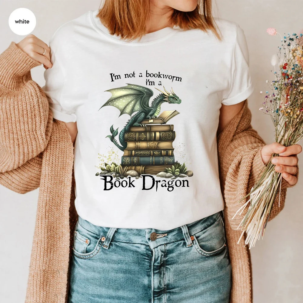Book Dragon T Shirt I’m Not A Bookworm T-shirt Fantasy Reading Tshirt Dragon and Books Graphic Tshirt Unisex Short Sleeve Tops