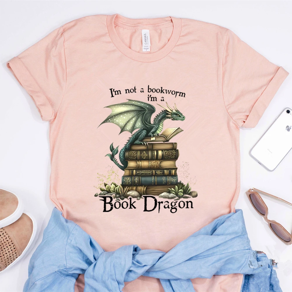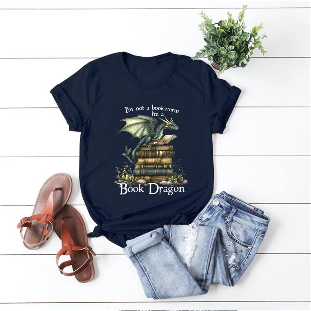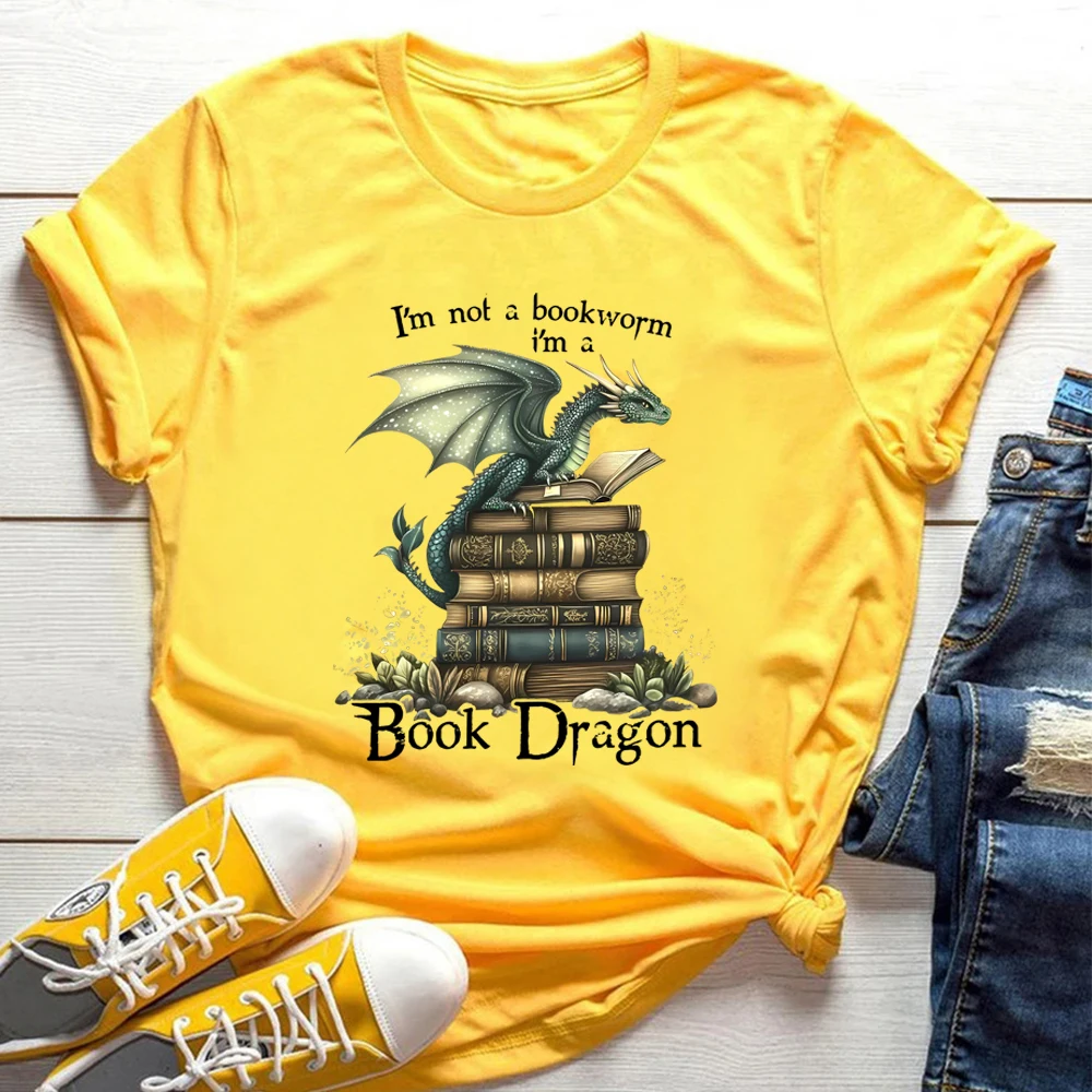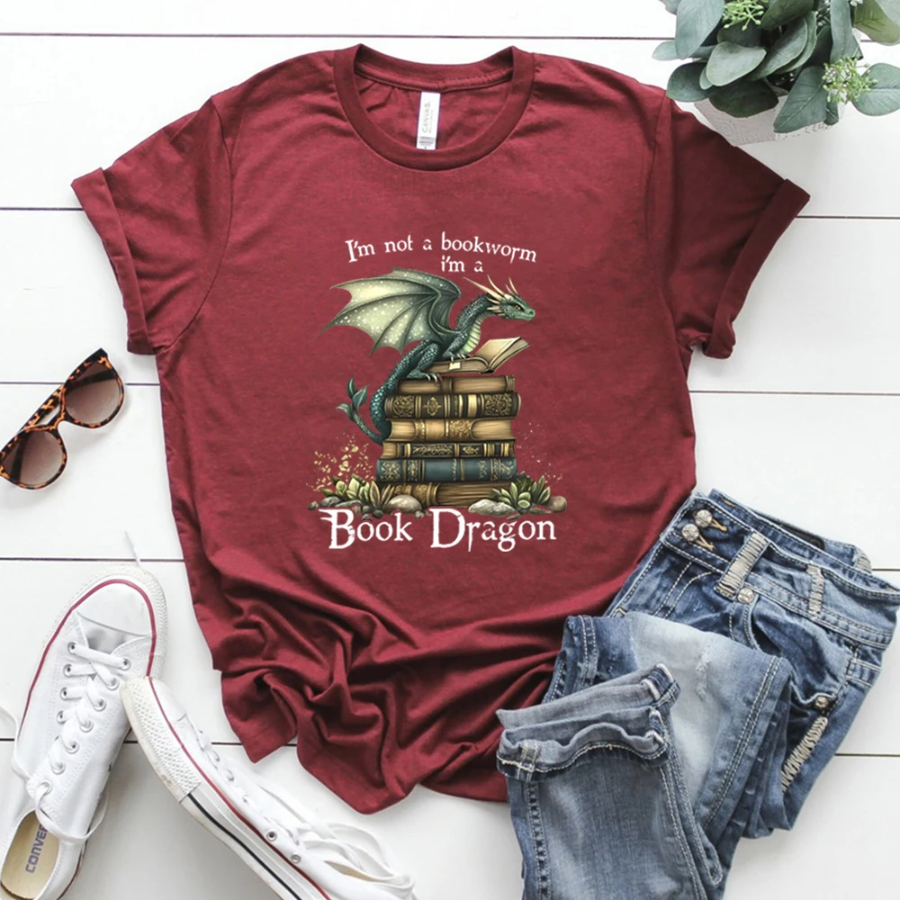 Book Dragon T Shirt I’m Not A Bookworm T-shirt Fantasy Reading Tshirt Dragon and Books Graphic Tshirt Unisex Short Sleeve Tops