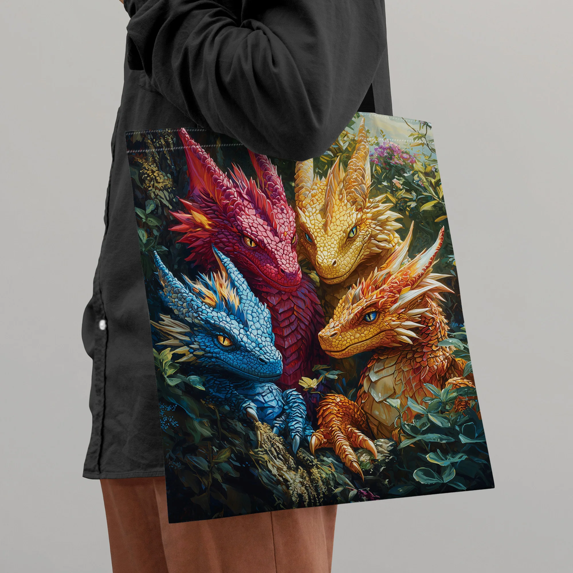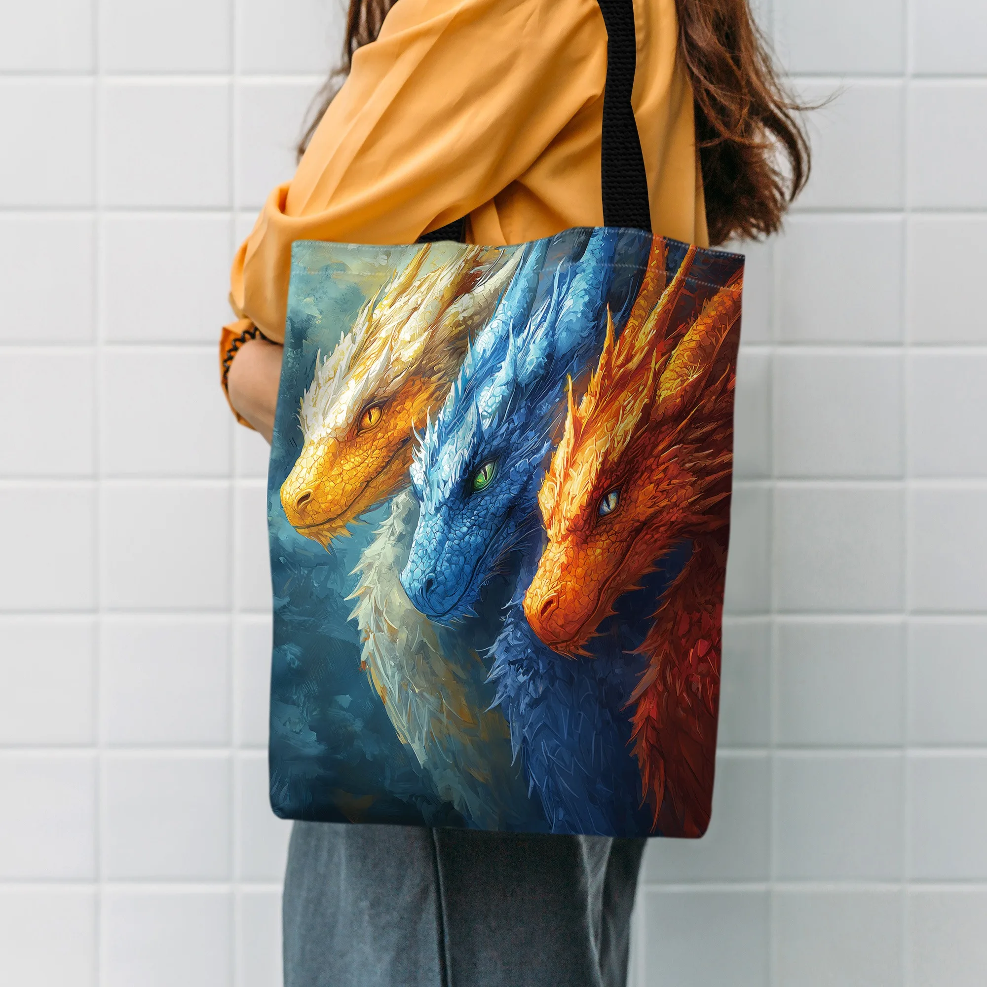 Dragon Lore Bold Fantasy Dragons Tote Bag Durable Polyester Fashion-Forward Design shoulder bag Shopping & Everyday Use Handbag