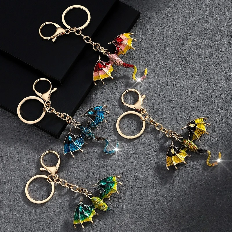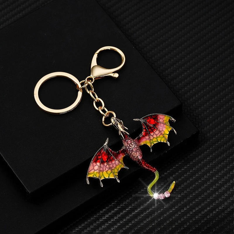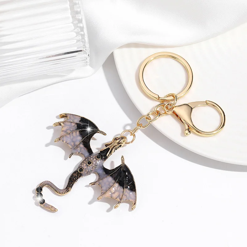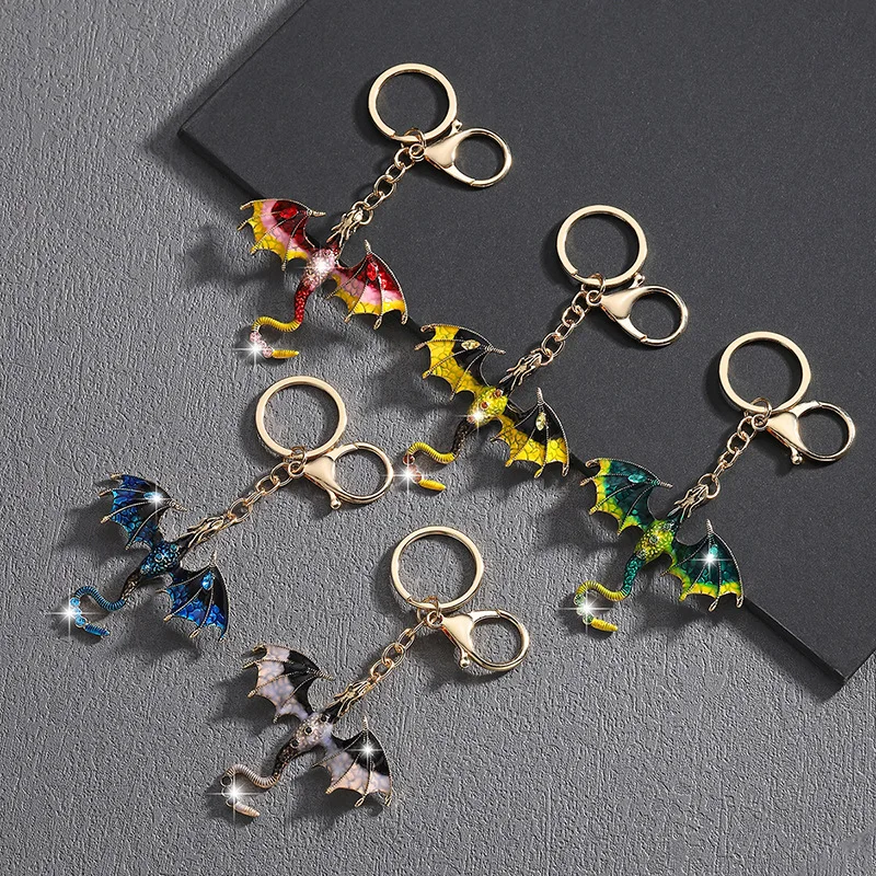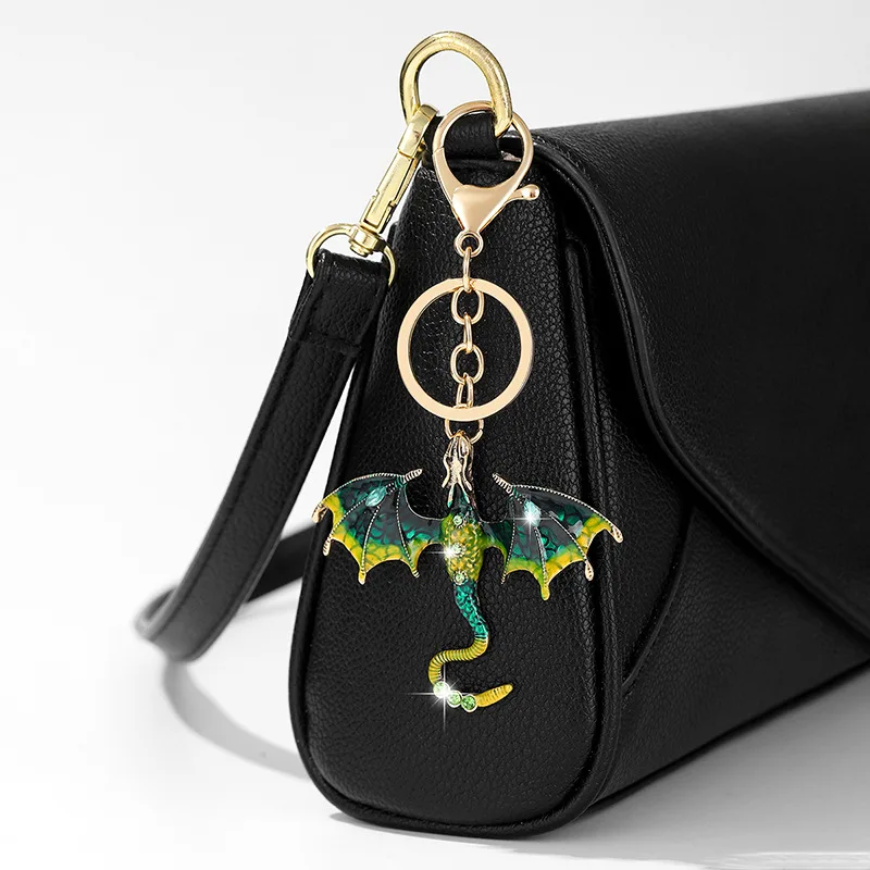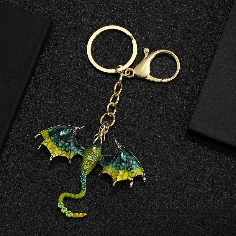 Retro oil drop cartoon flying dragon shape pendant heavy industry hip hop diamond cartoon couple keychain accessories