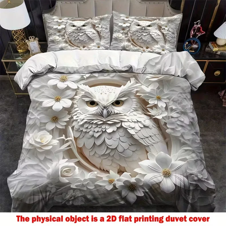 3D White Owl Duvet Cover Set 3pcs King Queen Style Bedding Set Bedroom Room Children Birthday Gift Decoration