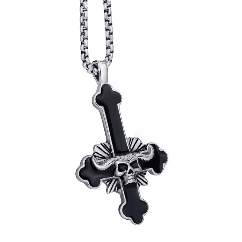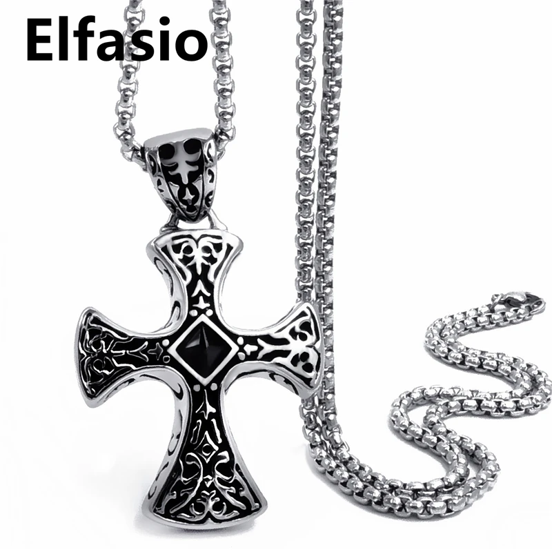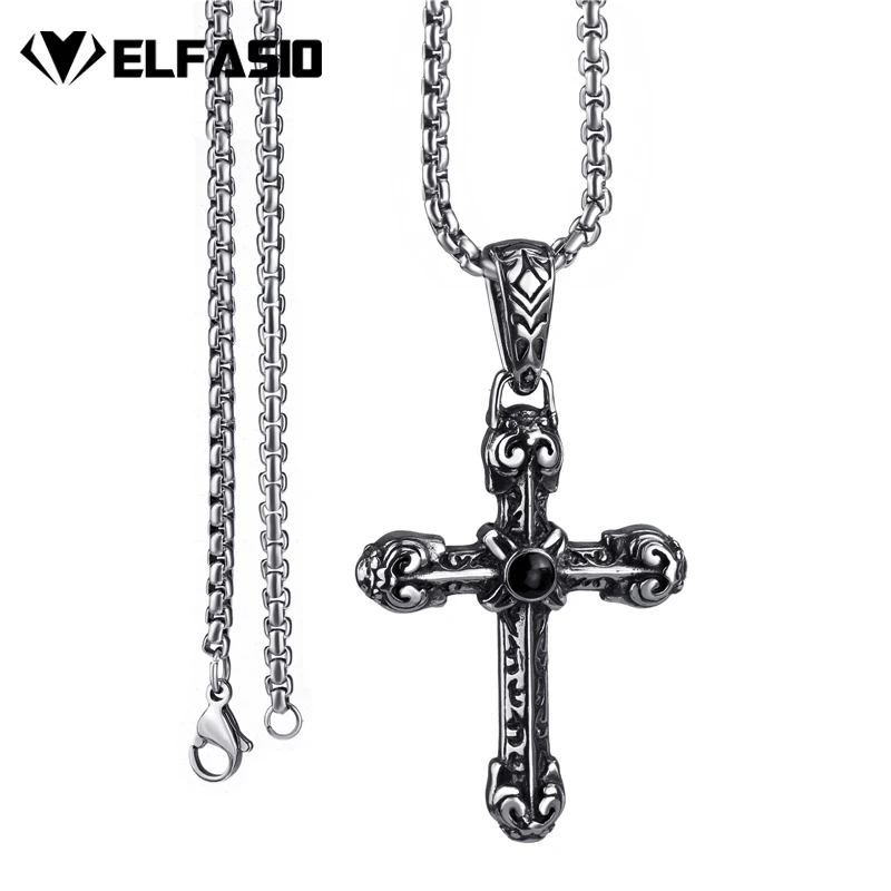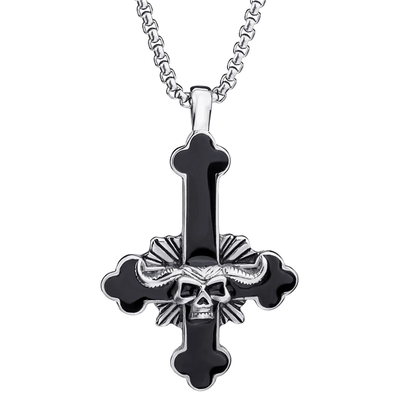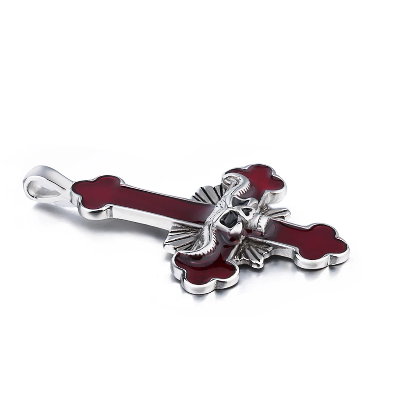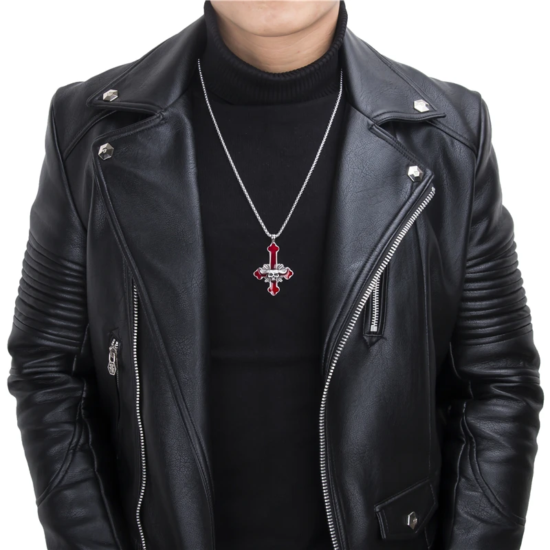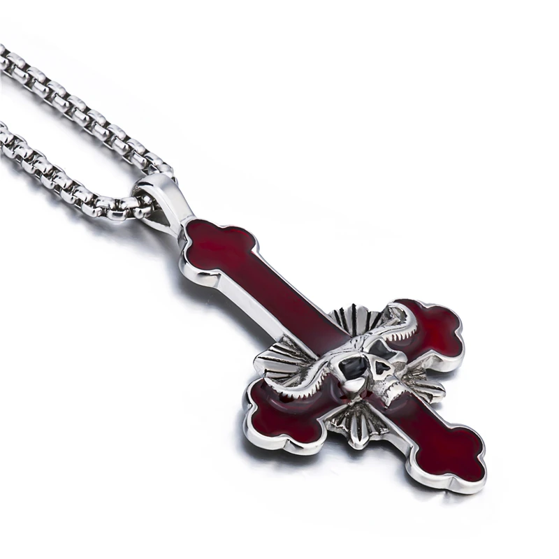 Elfasio Men's Bloody red Black The devil's Cross Retro Stainless Steel Pendant Necklace Chain Jewelry