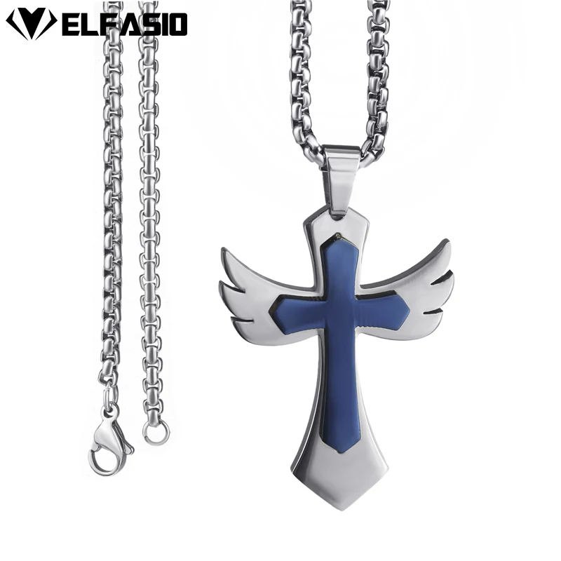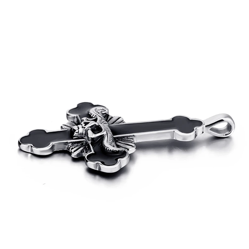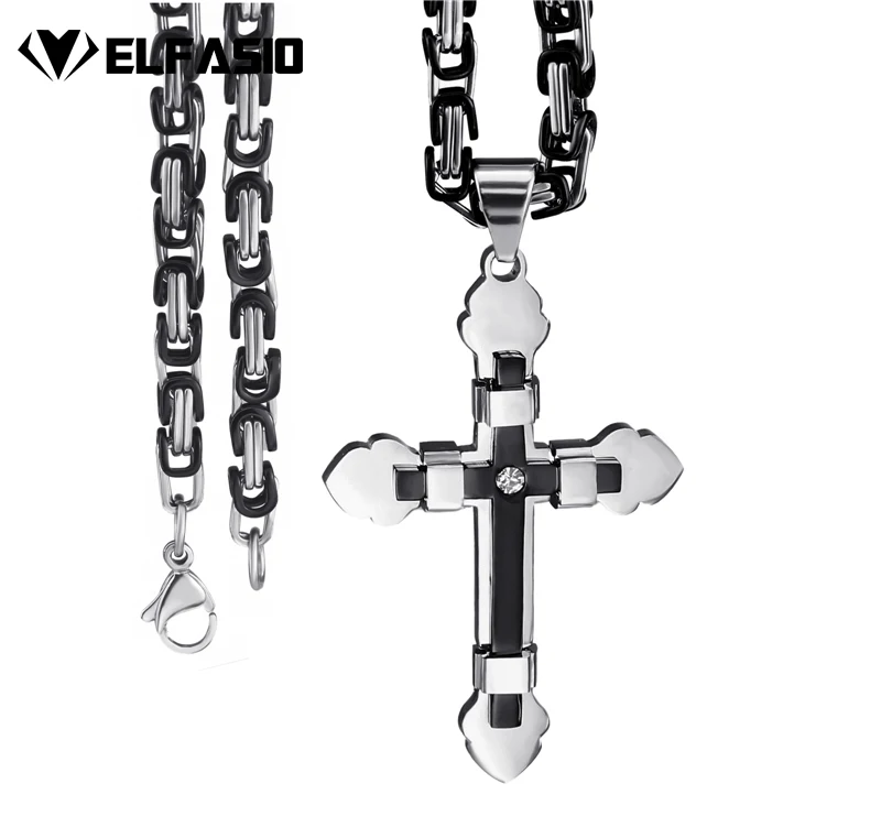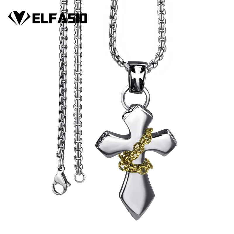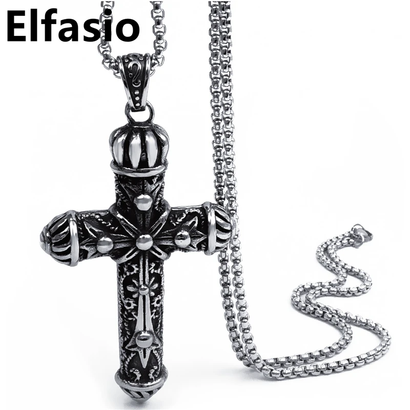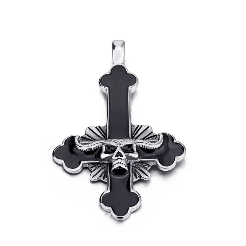 Elfasio Men's Bloody red Black The devil's Cross Retro Stainless Steel Pendant Necklace Chain Jewelry
