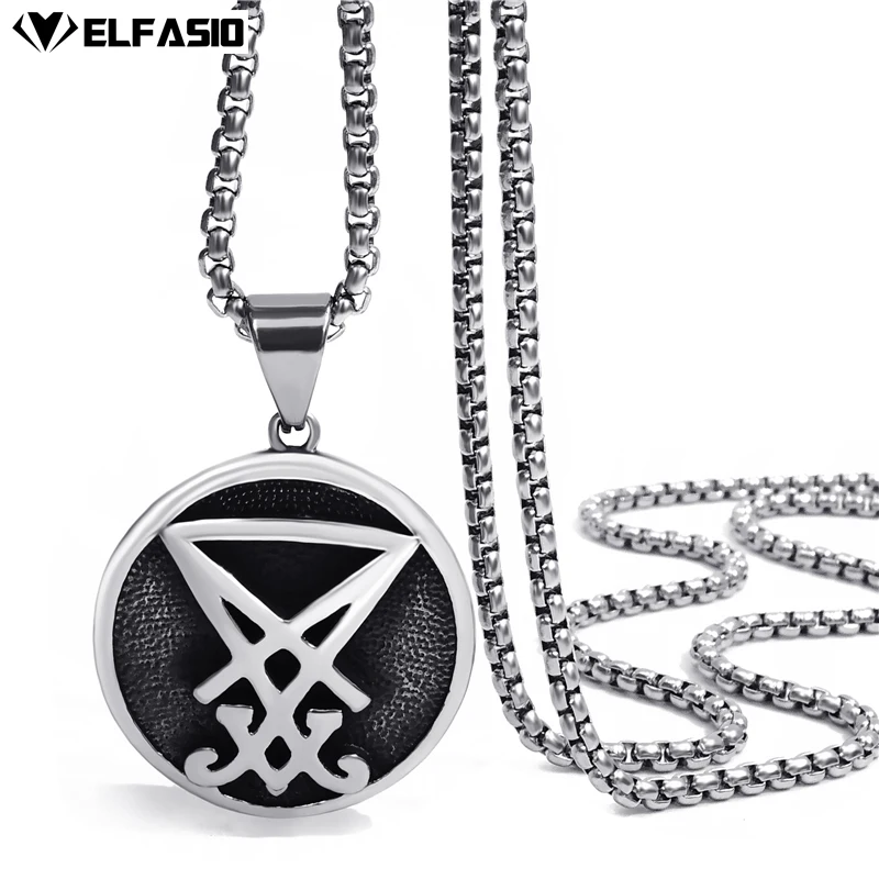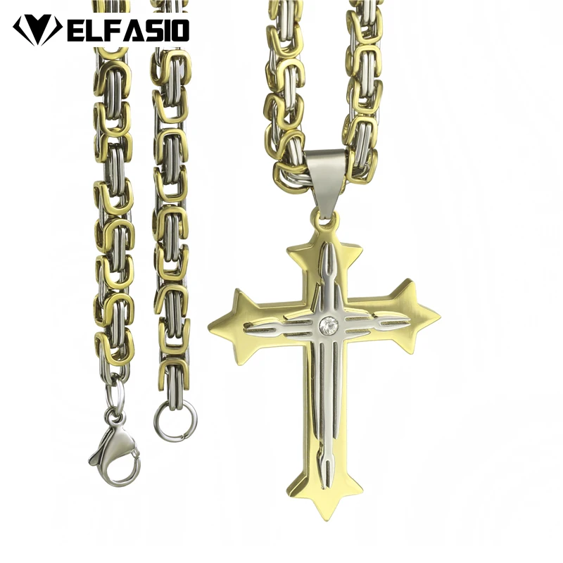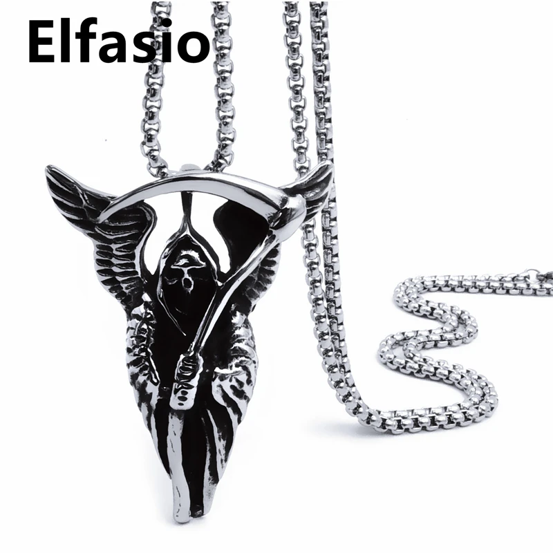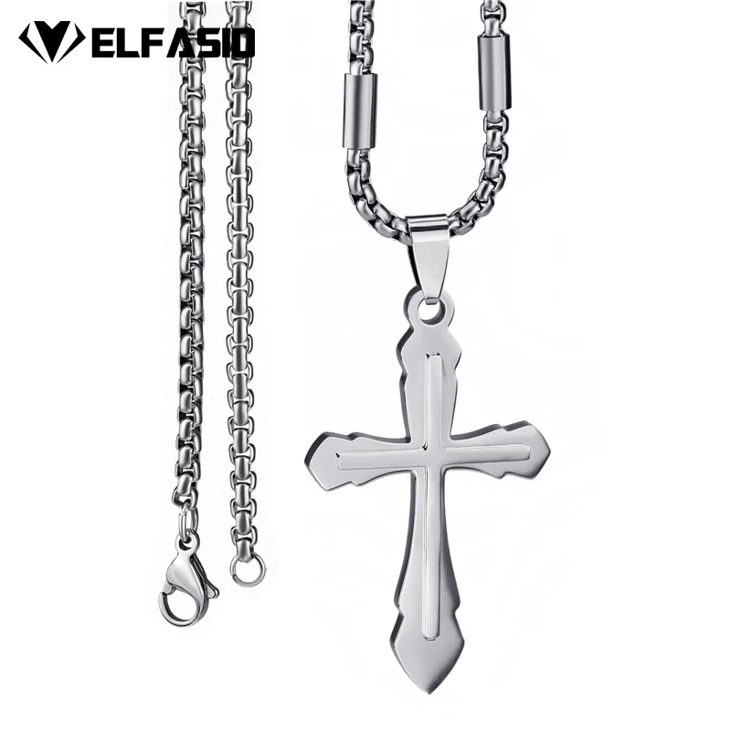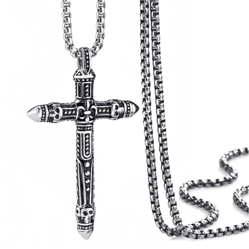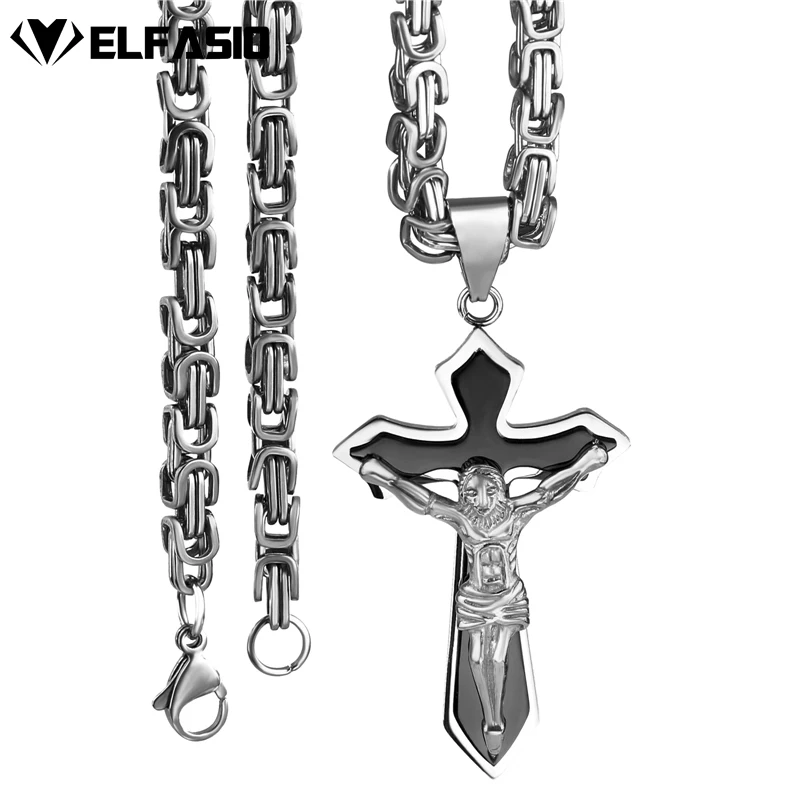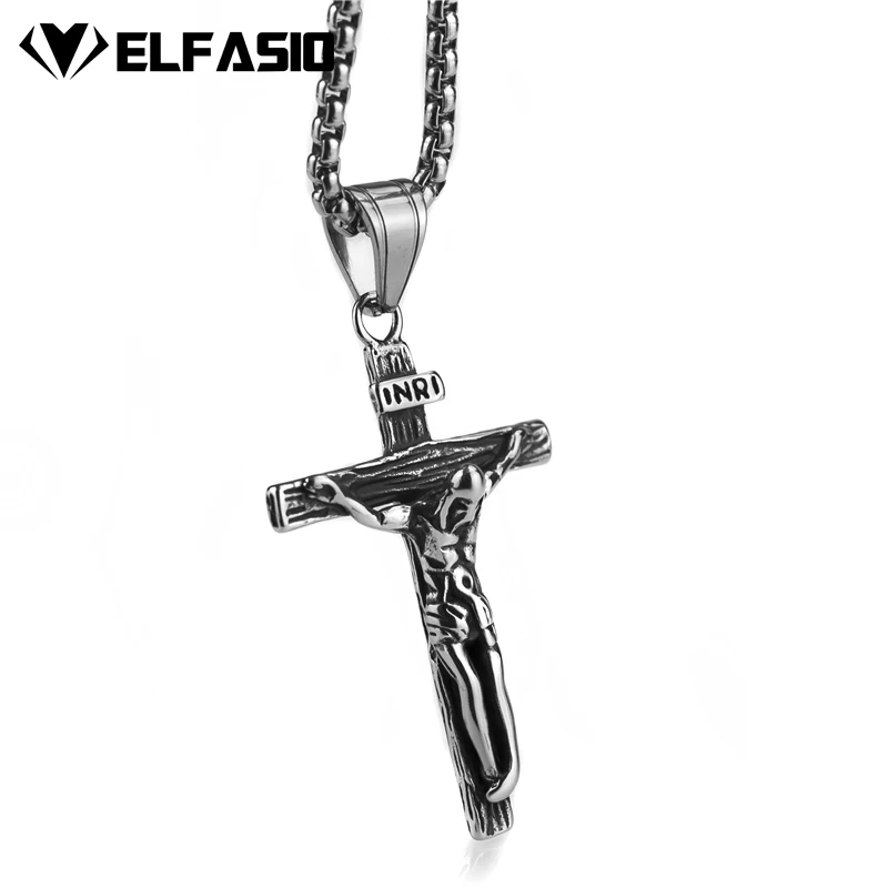Elfasio Men's Bloody red Black The devil's Cross Retro Stainless Steel Pendant Necklace Chain Jewelry