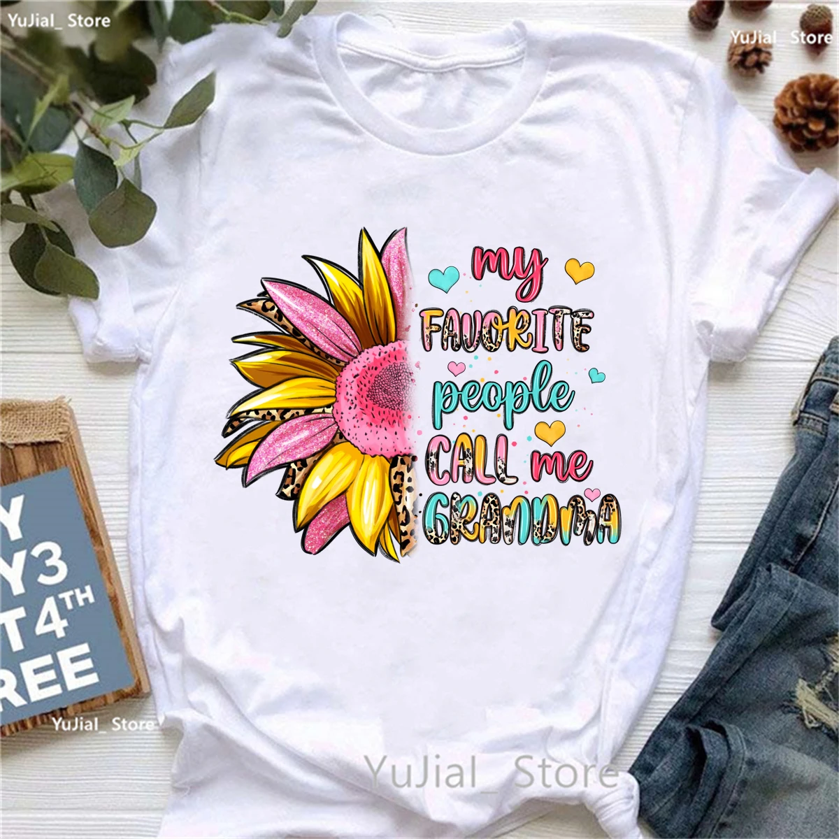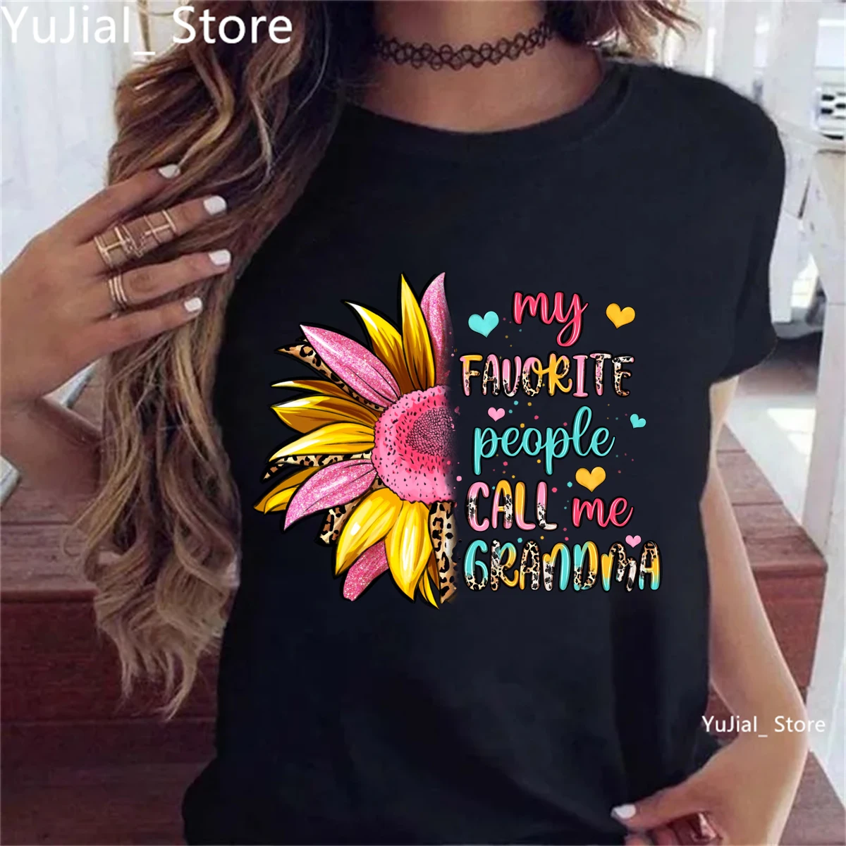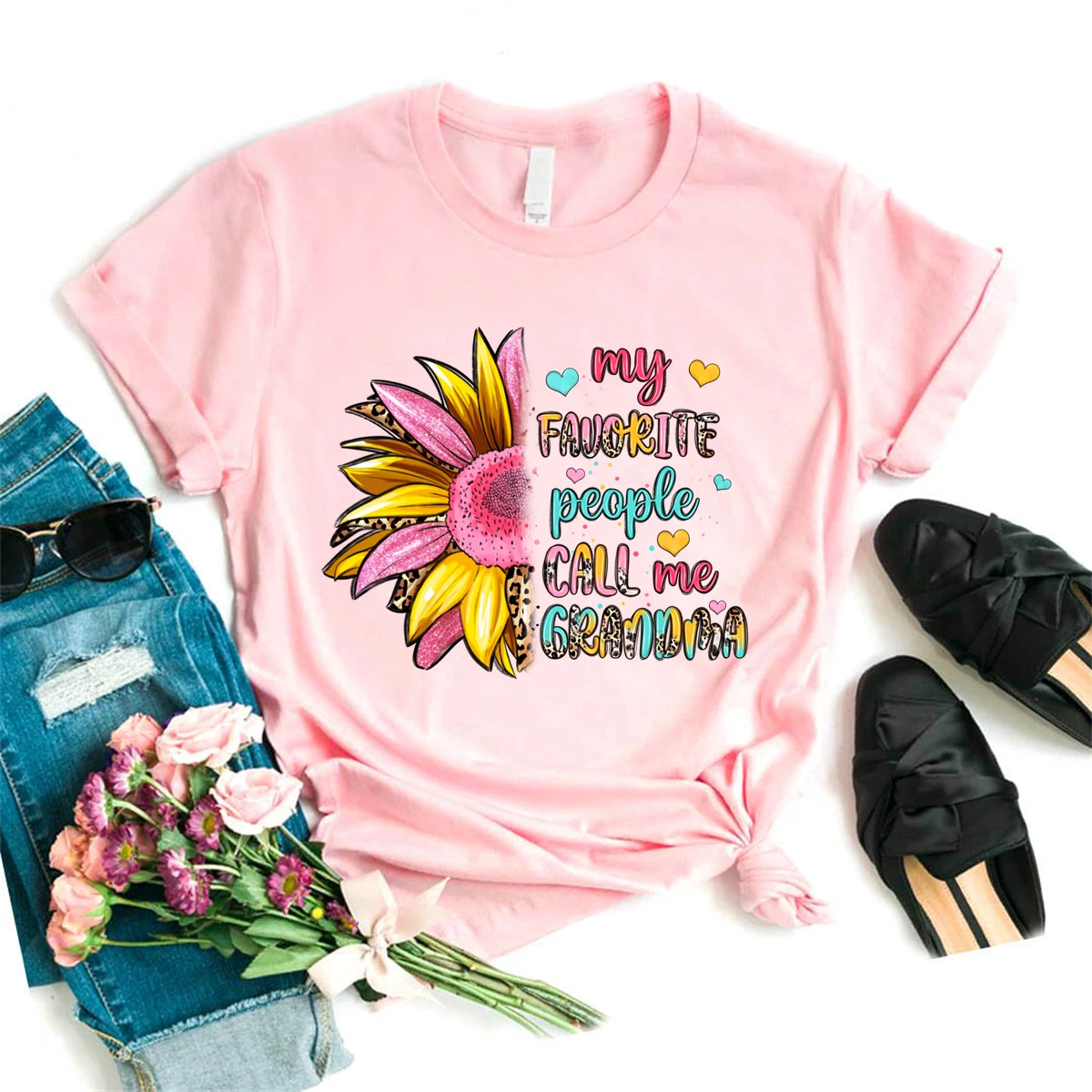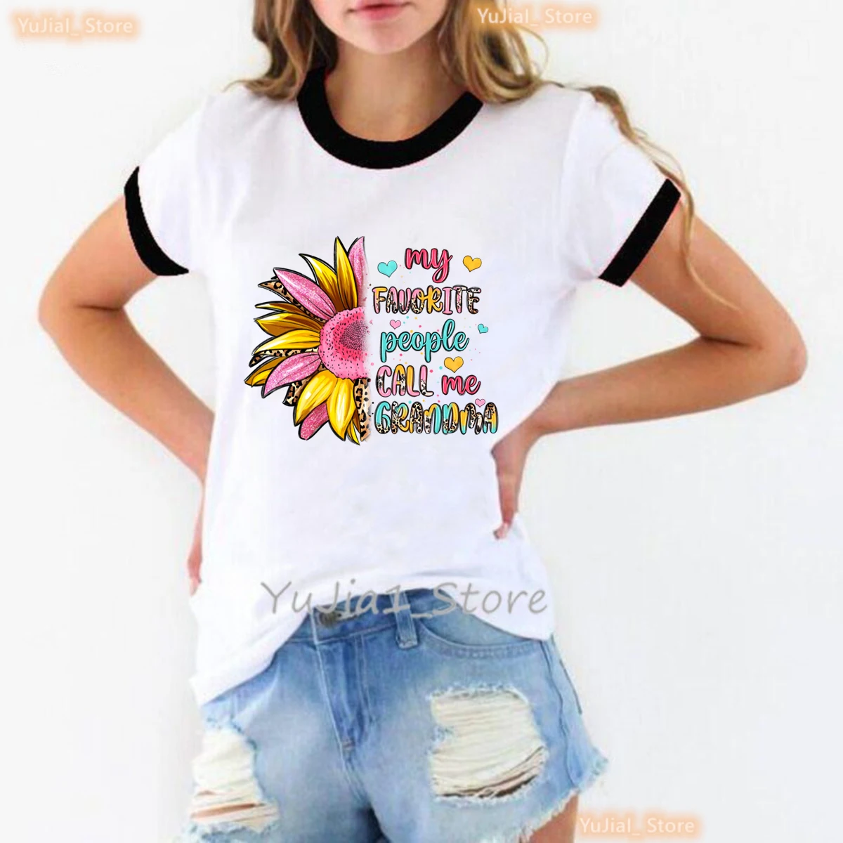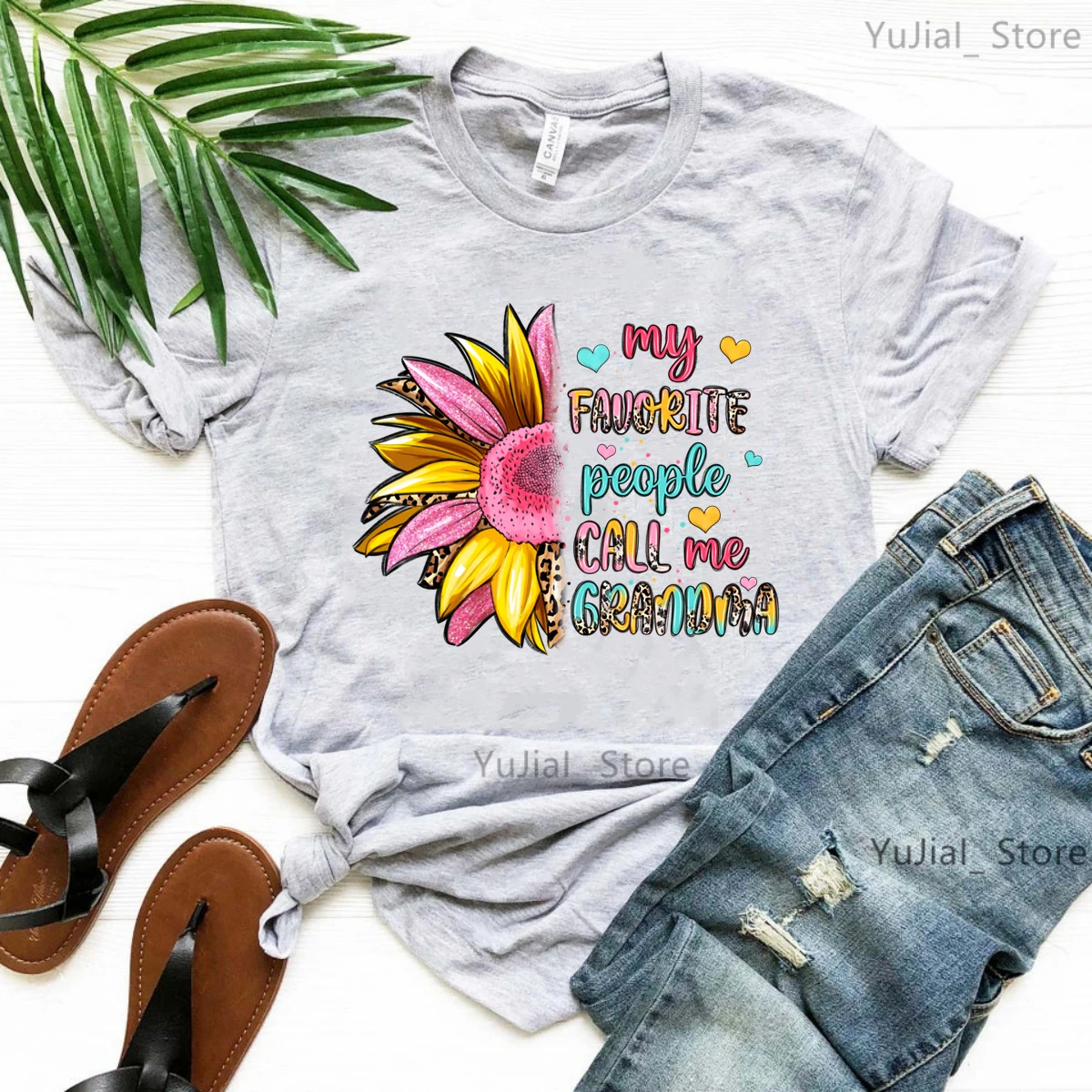 Colorful My Favorite People Call Me Grandma Printed T Shirt Women Sunflower Leopard Mother'S Day Gifts Tshirt Femme T-Shirt