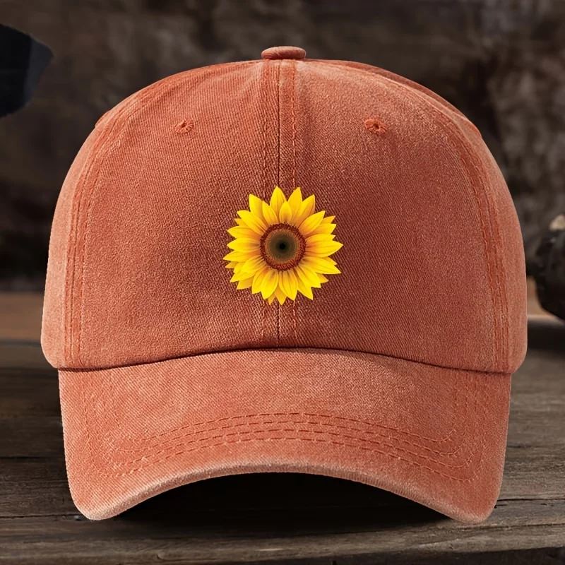 Fashionable Sunflower Flower Printed Baseball Hat Versatile Outdoor Leisure Fishing Sunshade Duck Tongue Hat Travel