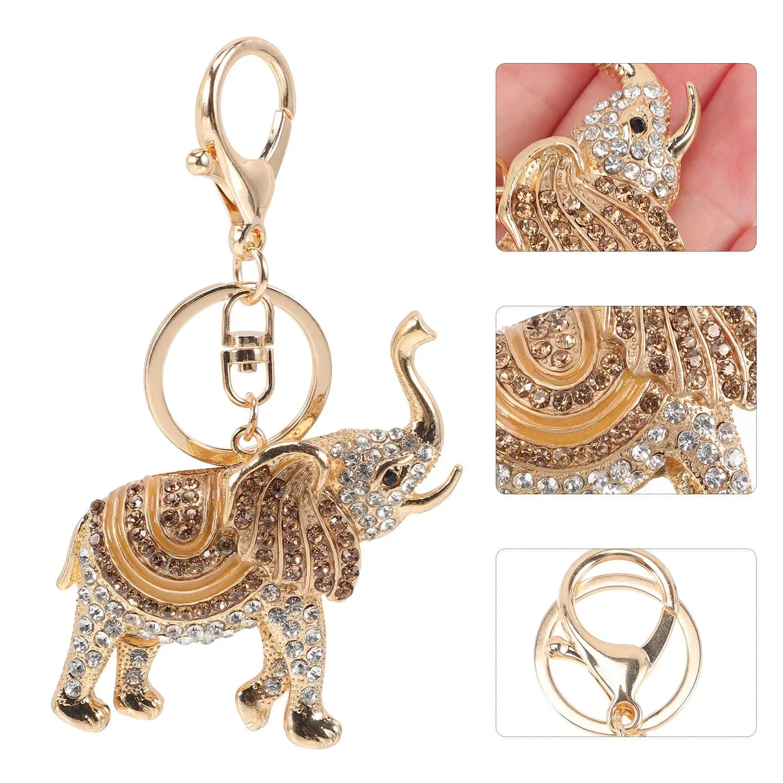 Elephant Keychain Crystal Rhinestones Alloy Cute Ornament Durable Quality Handbags Backpacks Waist Belt Purses Car Keys Home