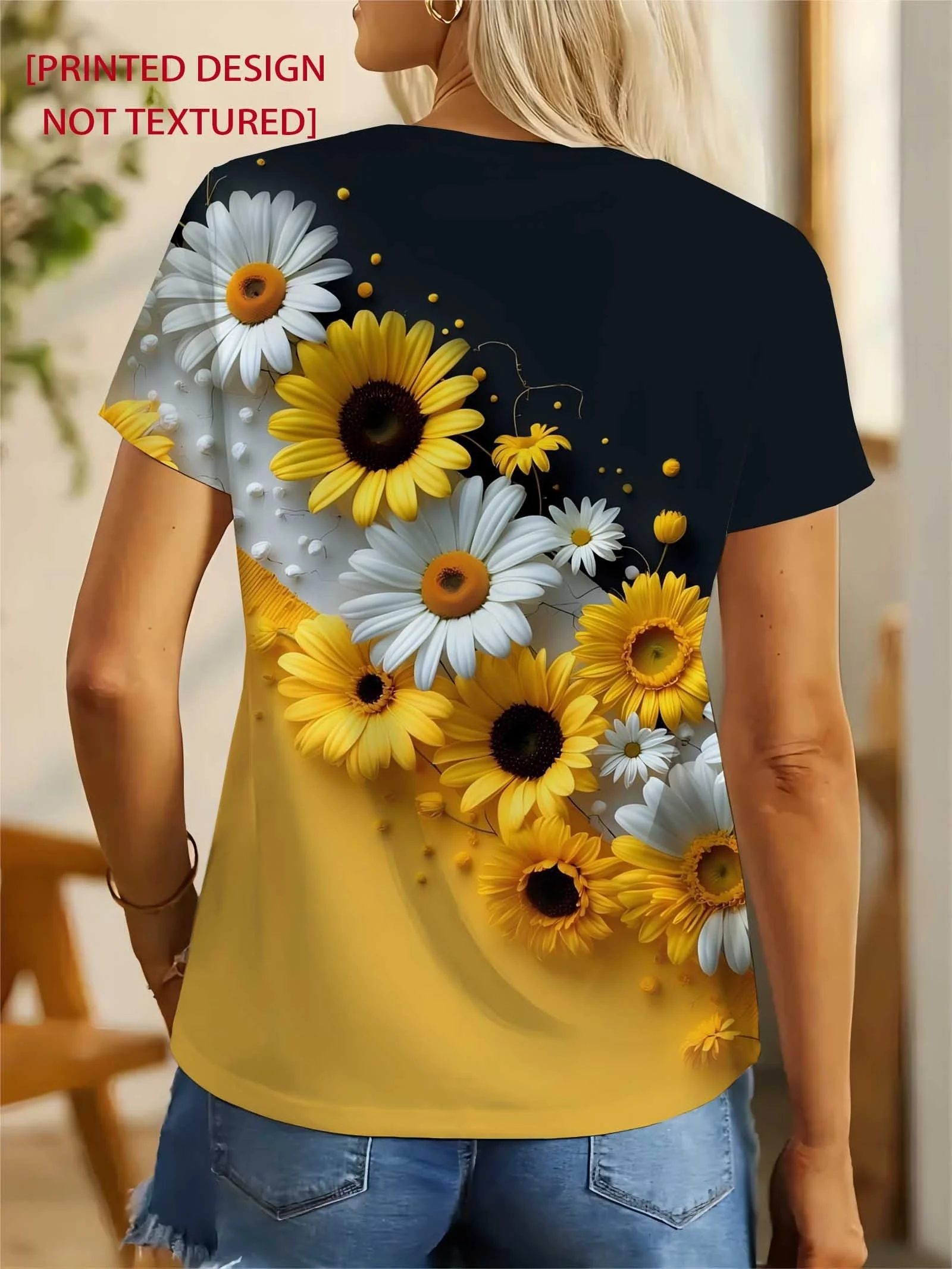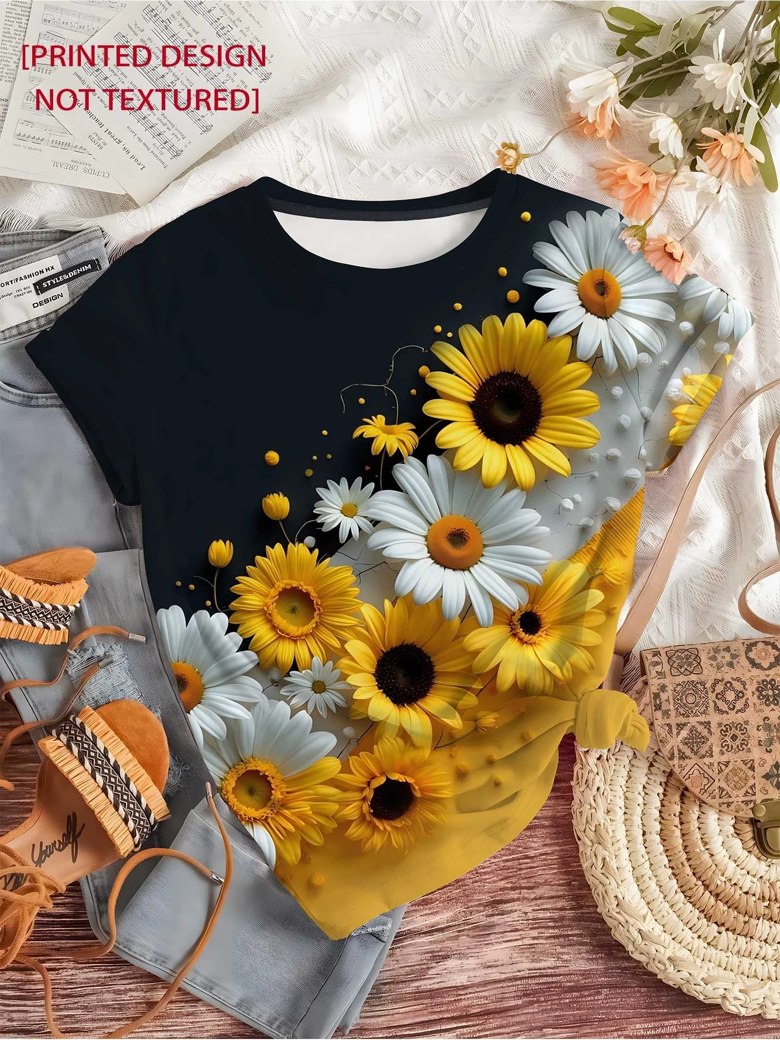 Women's Tee - Sunflower & Daisy Bouquet Graphic, Bright Floral Print Design for Casual Daily Wear