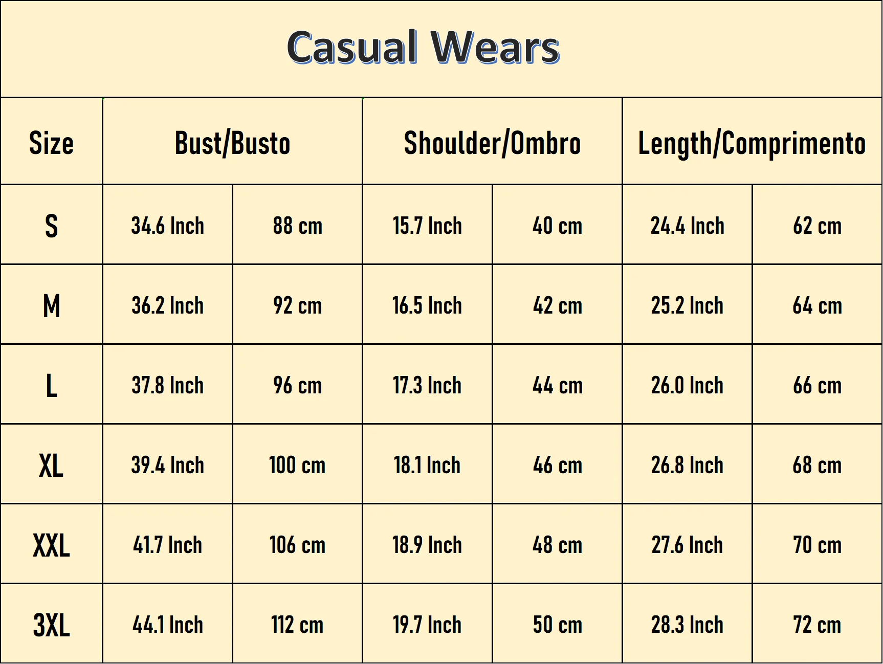 2XL---bust 106 cm, width 48 cm, shirt length 71 cm